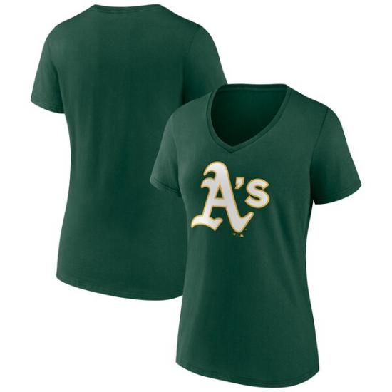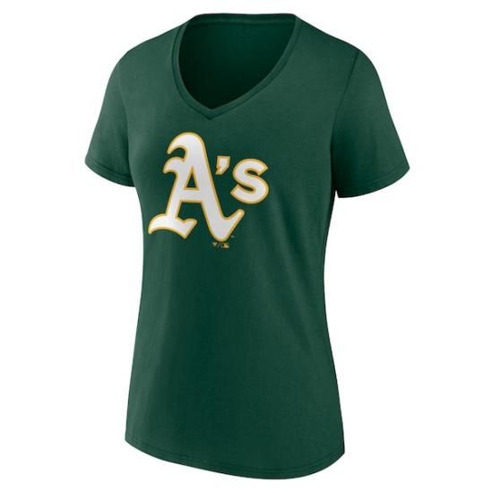 アスレチックス レディース チーム カラー プライマリー ロゴ Vネック Tシャツ - グリーンは、メジャーリーグ公認のMLBグッズです。