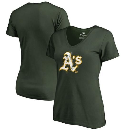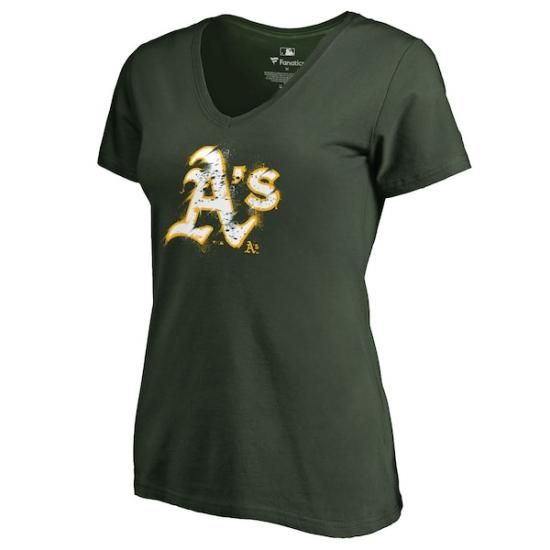アスレチックス レディース スパラター ロゴ Vネック Tシャツ - グリーンは、メジャーリーグ公認のMLBグッズです。