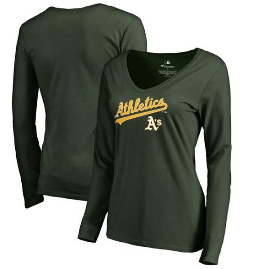 アスレチックス レディース チーム ロックup スリムフィット ロングスリーブ Vネック Tシャツ - グリーンは、メジャーリーグ公認のMLBグッズです。