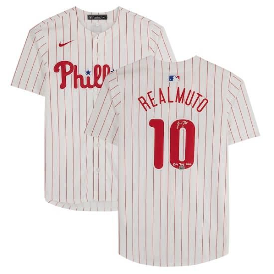 商品説明 J.T. リアルmuトゥー フィラデルフィア・フィリーズ 直筆サイン入り ファナティクス オーセンティック ホワイト Nike Limited ユニフォーム with "リング the Bell" インスクリプションは、メジャーリーグ公認のMLBグッズです。
