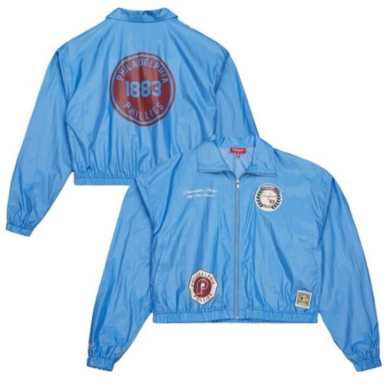 フィラデルフィア・フィリーズ ミッチェル&ネス レディース ナイロン 短く切った フル-ジップ ジャケット - ブルーは、メジャーリーグ公認のMLBグッズです。