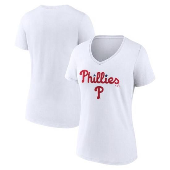 フィラデルフィア・フィリーズ レディース チーム ロックup Vネック Tシャツ - ホワイトは、メジャーリーグ公認のMLBグッズです。
