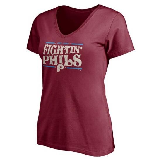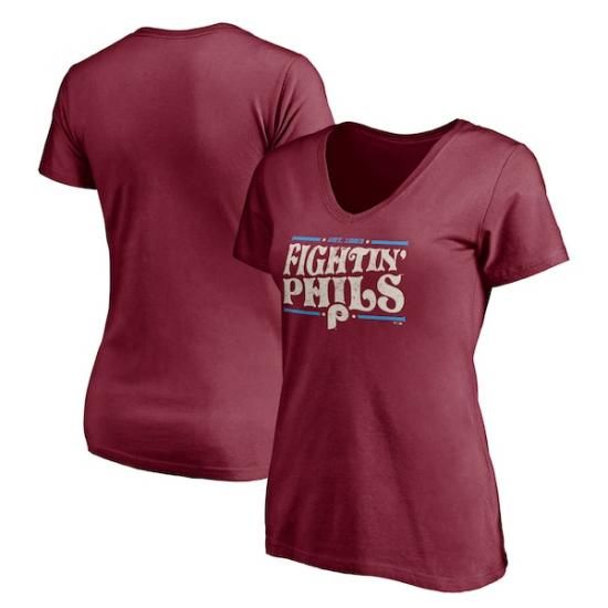 フィラデルフィア・フィリーズ レディース Fightin' Phils Vネック Tシャツ - Burgundyは、メジャーリーグ公認のMLBグッズです。