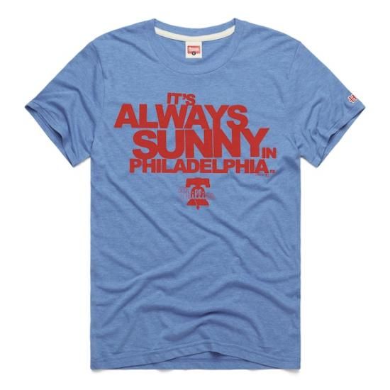 フィラデルフィア・フィリーズ x It's Always Sunny in フィラデルフィア Homage Male Adult Tシャツ - ライト ブルーは、メジャーリーグ公認のMLBグッズです。