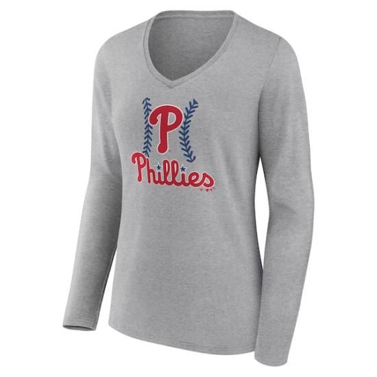 フィラデルフィア・フィリーズ レディース ファストボール ロングスリーブ Vネック Tシャツ - グレーは、メジャーリーグ公認のMLBグッズです。