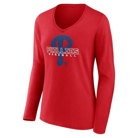 フィラデルフィア・フィリーズ レディース Stellar ロングスリーブ Vネック Tシャツ - レッドは、メジャーリーグ公認のMLBグッズです。