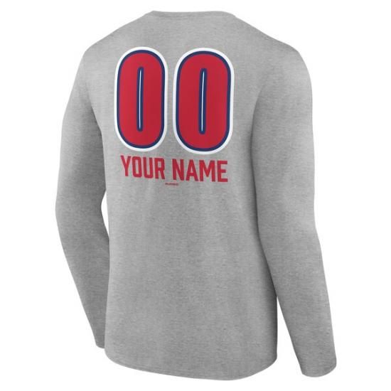 フィラデルフィア・フィリーズ パーソナライズ ネーム&ナンバー ファストボール ロングスリーブ Tシャツ - グレーは、メジャーリーグ公認のMLBグッズです。