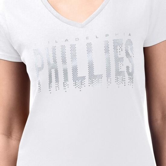 フィラデルフィア・フィリーズ G-III 4Her by カール バンクス レディース メタリック ドロップ 軽量 Vネック Tシャツ - ホワイトは、メジャーリーグ公認のMLBグッズです。