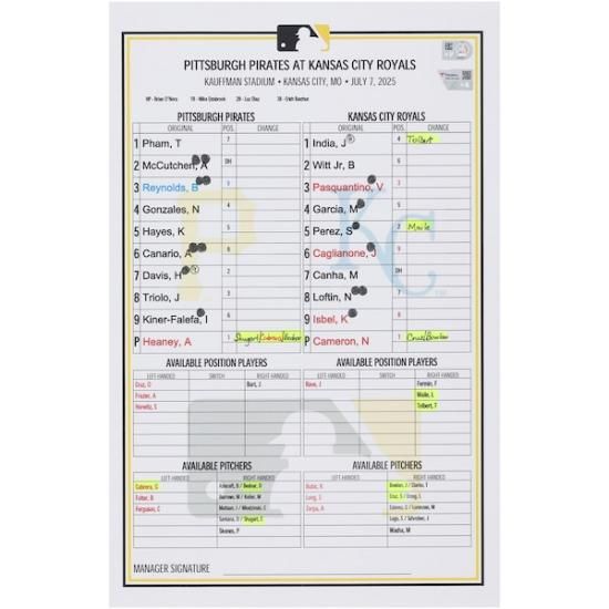 商品説明 ピッツバーグ・パイレーツ ファナティクス オーセンティック 実際の試合で使用された ラインアップ カード vs. カンザスシティ・ロイヤルズ オン July 7, 2025は、メジャーリーグ公認のMLBグッズです。