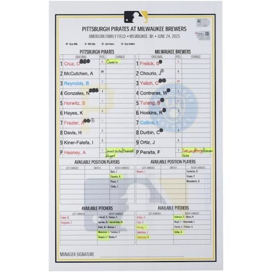 ピッツバーグ・パイレーツ ファナティクス オーセンティック 実際の試合で使用された ラインアップ カード vs. ミルウォーキー・ブルワーズ オン June 24, 2025は、メジャーリーグ公認のMLBグッズです。