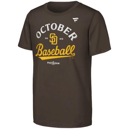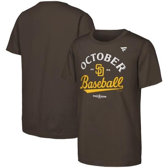 サンディエゴ・パドレス ファナティクス ユース 2025 MLB ポストシーズン ロッカー ルーム Tシャツ - ブラウンは、メジャーリーグ公認のMLBグッズです。