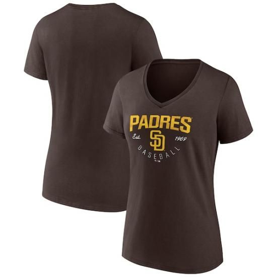 サンディエゴ・パドレス レディース Live For It チーム Vネック Tシャツ - ブラウンは、メジャーリーグ公認のMLBグッズです。