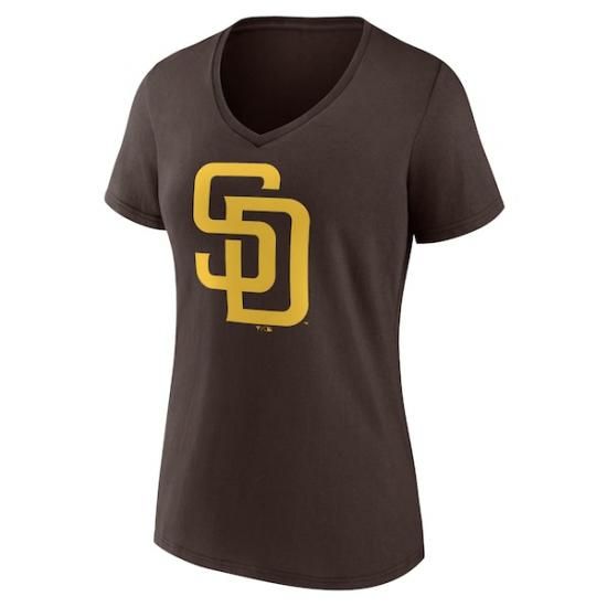 サンディエゴ・パドレス レディース オフィシャル ロゴ Vネック Tシャツ - ブラウンは、メジャーリーグ公認のMLBグッズです。