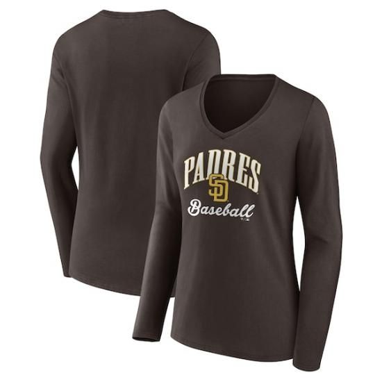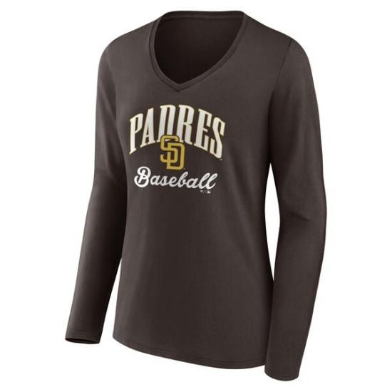 サンディエゴ・パドレス レディース ビクトリー スクリプト ロングスリーブ Vネック Tシャツ -