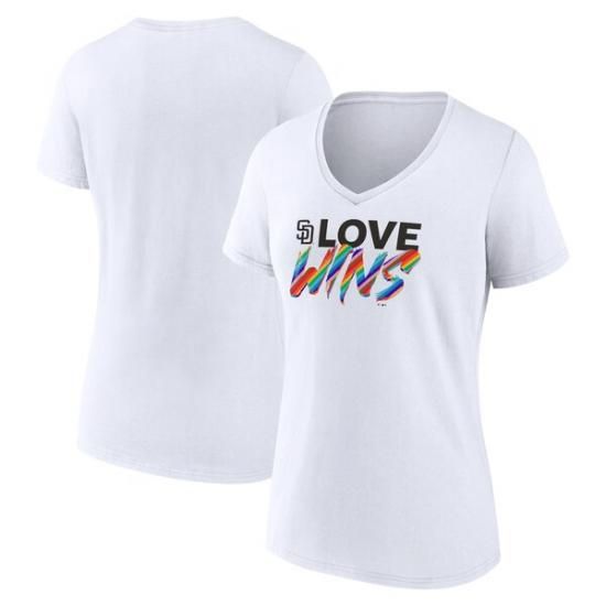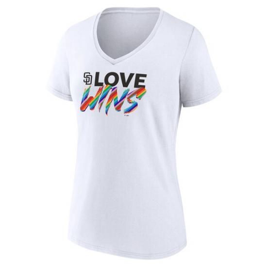 サンディエゴ・パドレス レディース ラブ Wins Vネック Tシャツ - ホワイトは、メジャーリーグ公認のMLBグッズです。