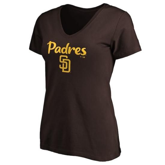 サンディエゴ・パドレス レディース #1 マム ロゴ Vネック Tシャツ - ブラウン