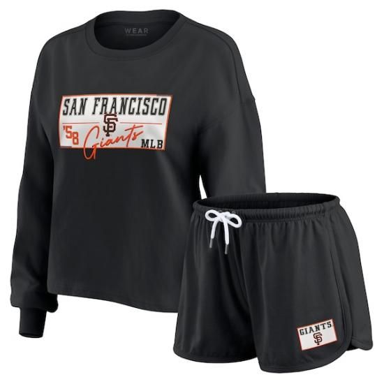 サンフランシスコ・ジャイアンツ WEAR by Erin Andrews レディース Heavy ラグビー ユニフォーム 短く切った ロングスリーブ Tシャツ & パンツ ラウンジ セット - ブラックは、メジャーリーグ公認のMLBグッズです。