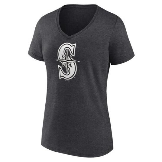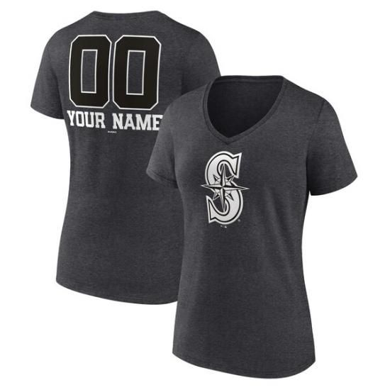 シアトル・マリナーズ レディース パーソナライズ Mオンochrome ネーム&ナンバー Vネック Tシャツ - チャコールは、メジャーリーグ公認のMLBグッズです。