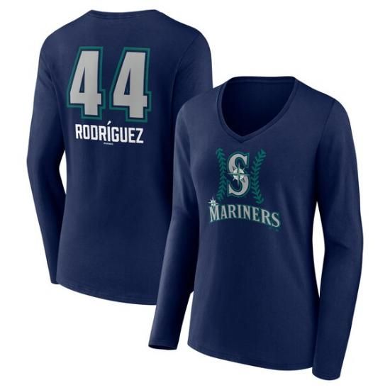 商品説明 Julio Rodriguez シアトル・マリナーズ レディース ネーム&ナンバー ファストボール Vネック ロングスリーブ Tシャツ - ネイビーは、メジャーリーグ公認のMLBグッズです。