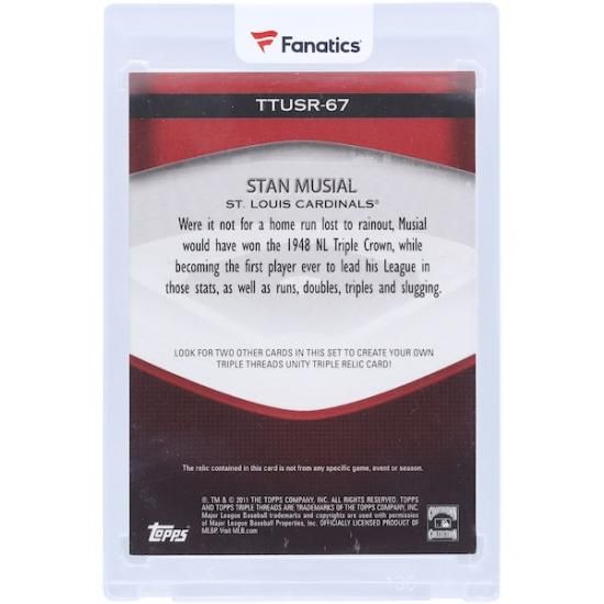 スタン・ミュージアル セントルイス・カージナルス 2011 トッププレーヤー トリプル スレーズ 実際の試合で使用された Relic #TTUSR-67 #5/36 カードは、メジャーリーグ公認のMLBグッズです。