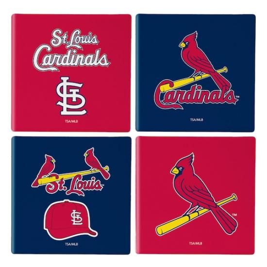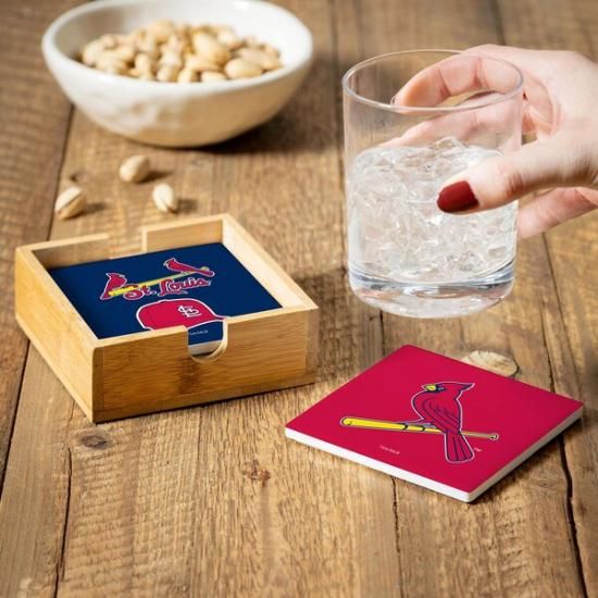 セントルイス・カージナルス フォー-点 セラミック コースター セット with ウッド キャディー