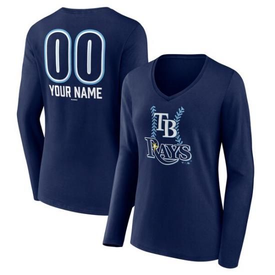 タンパベイ・レイズ レディース パーソナライズ ネーム&ナンバー ファストボール ロングスリーブ Vネック Tシャツ - ネイビーは、メジャーリーグ公認のMLBグッズです。