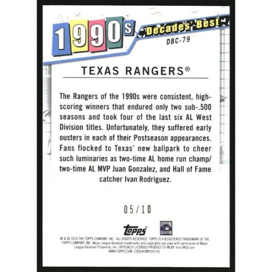 商品説明 2020 トッププレーヤー Decades' Best シリーズ 2 レッド #DBC79 テキサス・レンジャーズ /10は、メジャーリーグ公認のMLBグッズです。