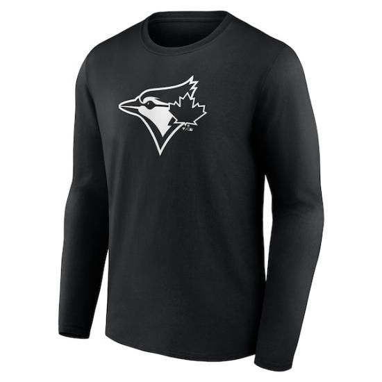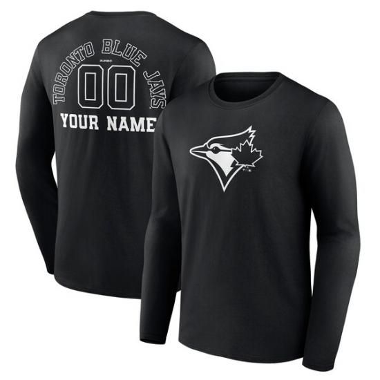 トロント・ブルージェイズ Mオンochrome パーソナライズ ネーム&ナンバー ロングスリーブ Tシャツ - ブラックは、メジャーリーグ公認のMLBグッズです。