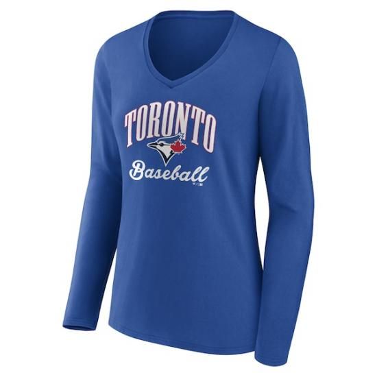 トロント・ブルージェイズ レディース ビクトリー スクリプト ロングスリーブ Vネック Tシャツ - ロイヤルは、メジャーリーグ公認のMLBグッズです。