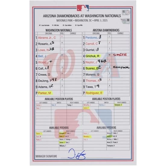 商品説明 ワシントン・ナショナルズ ファナティクス オーセンティック 実際の試合で使用された ラインアップ カード vs. アリゾナ・ダイヤモンドバックス オン April 5, 2025は、メジャーリーグ公認のMLBグッズです。