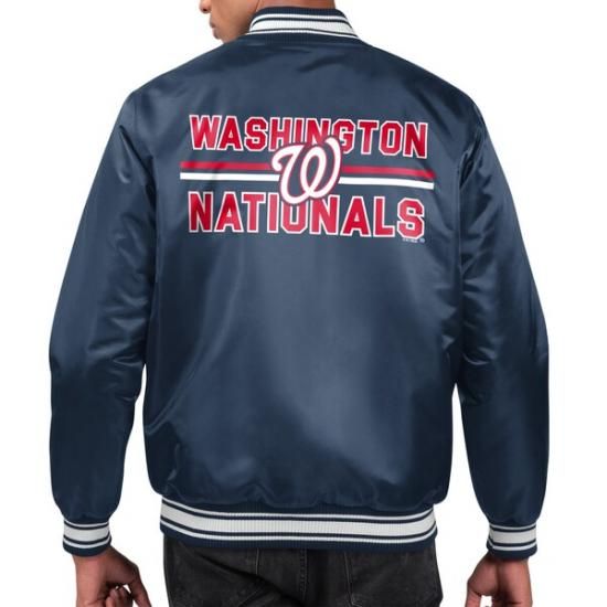 ワシントン・ナショナルズ スターター プリント チーム ロゴ サテン ヴィーシティ フル-スナップ ジャケット - ネイビーは、メジャーリーグ公認のMLBグッズです。