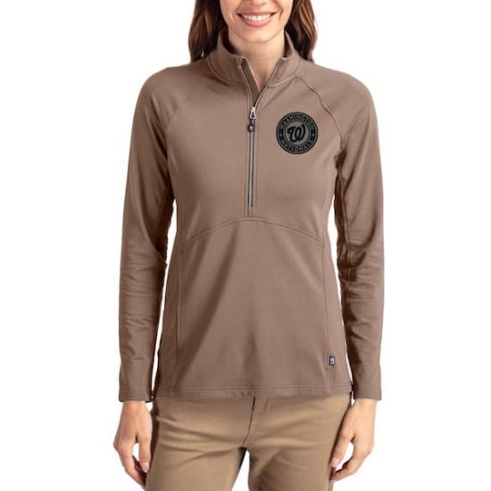 ワシントン・ナショナルズ Cutter &Buck レディース Adapt Eco ニット ストレッチ ハーフジップ プルオーバー - ブラウンは、メジャーリーグ公認のMLBグッズです。