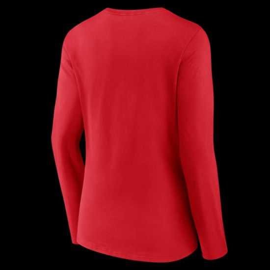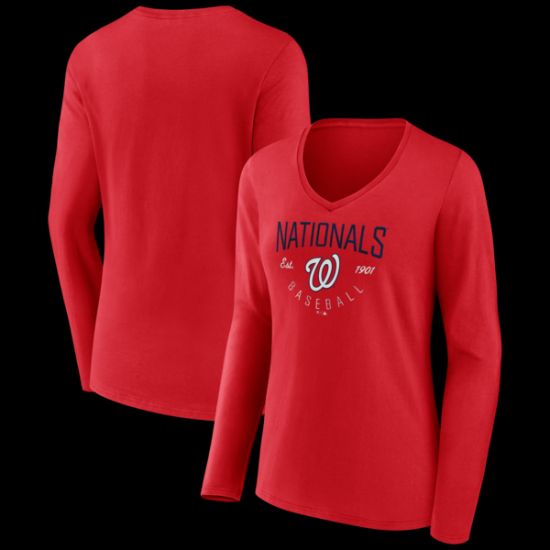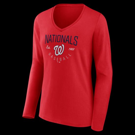 ワシントン・ナショナルズ レディース Live For It ロングスリーブ Vネック Tシャツ - レッドは、メジャーリーグ公認のMLBグッズです。