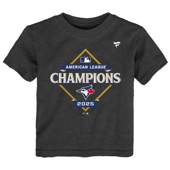 トロント・ブルージェイズ ファナティクス キッズ(歩き始めの子供) 2025 アメリカn リーグ チャンピオン ロッカー ルーム Tシャツ - ヘザー チャコールは、メジャーリーグ公認のMLBグッズです。