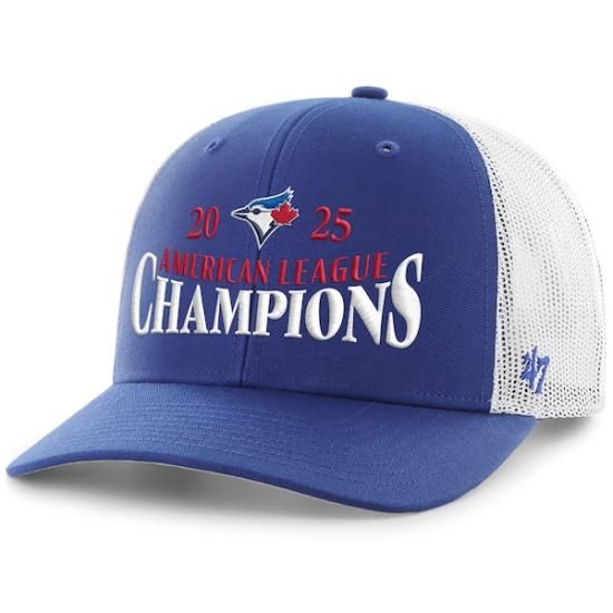 トロント・ブルージェイズ '47 2025 アメリカn リーグ チャンピオン トラッカー 調節可能 ハット - ロイヤル/ホワイトは、メジャーリーグ公認のMLBグッズです。