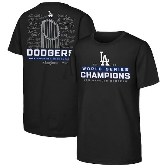 ロサンゼルス・ドジャース ファナティクス ユース 2025 ワールド シリーズ チャンピオン シグネクチャー ロスター Tシャツ - ブラックは、メジャーリーグ公認のMLBグッズです。
