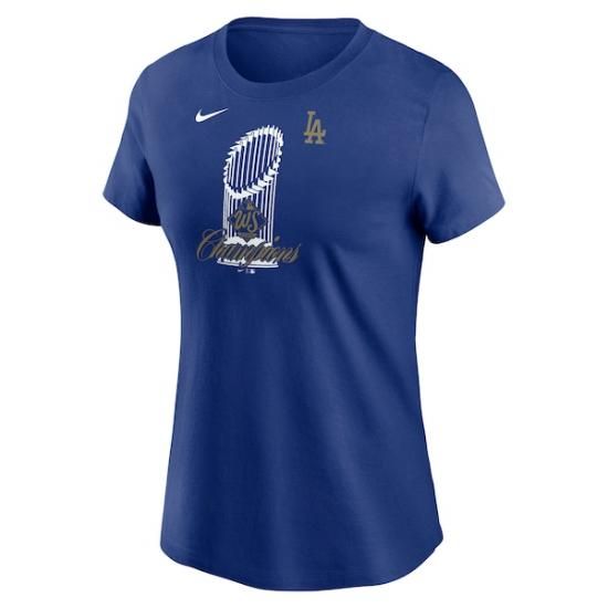 ロサンゼルス・ドジャース Nike レディース 2025 ワールド シリーズ チャンピオン トロフィー Tシャツ - ロイヤルは、メジャーリーグ公認のMLBグッズです。