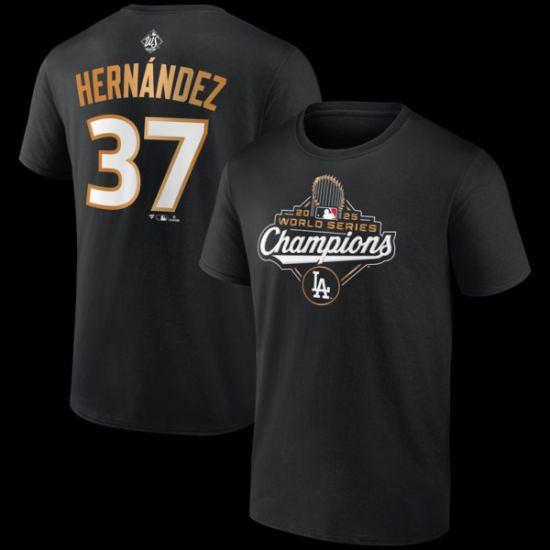 テオスカー・ヘルナンデス ロサンゼルス・ドジャース ファナティクス 2025 ワールド シリーズ チャンピオン ネーム&ナンバー Tシャツ - ブラックは、メジャーリーグ公認のMLBグッズです。