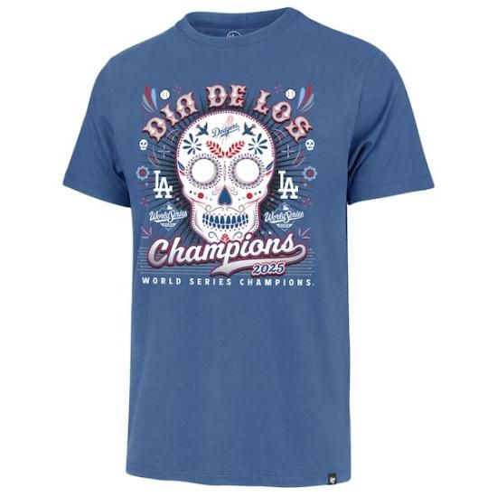 ロサンゼルス・ドジャース '47 2025 ワールド シリーズ チャンピオン Dia De Los チャンピオン フランクリン Tシャツ - ロイヤルは、メジャーリーグ公認のMLBグッズです。