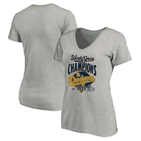 ロサンゼルス・ドジャース ファナティクス レディース 2025 ワールド シリーズ チャンピオン ロッカー ルーム レプリカ プラス サイズ Vネック Tシャツ - ヘザー グレーは、メジャーリーグ公認のMLBグッズです。
