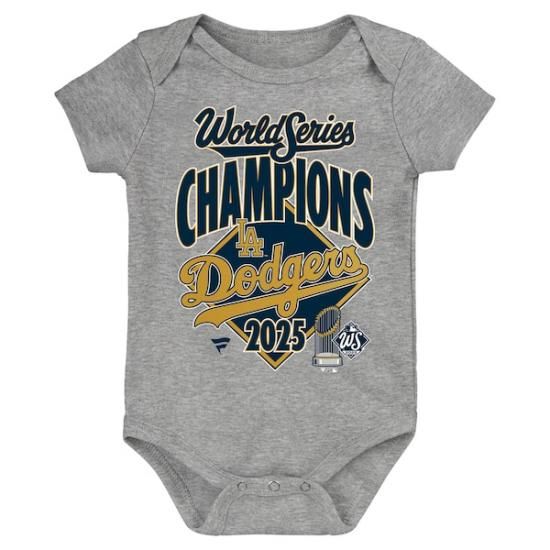 ロサンゼルス・ドジャース ファナティクス キッズ 2025 ワールド シリーズ チャンピオン ロッカー ルーム レプリカ ロンパース - ヘザー グレーは、メジャーリーグ公認のMLBグッズです。