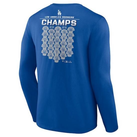 ロサンゼルス・ドジャース 2025 ワールド シリーズ チャンピオン ユニフォーム ロスター ロングスリーブ Tシャツ - ロイヤルは、メジャーリーグ公認のMLBグッズです。