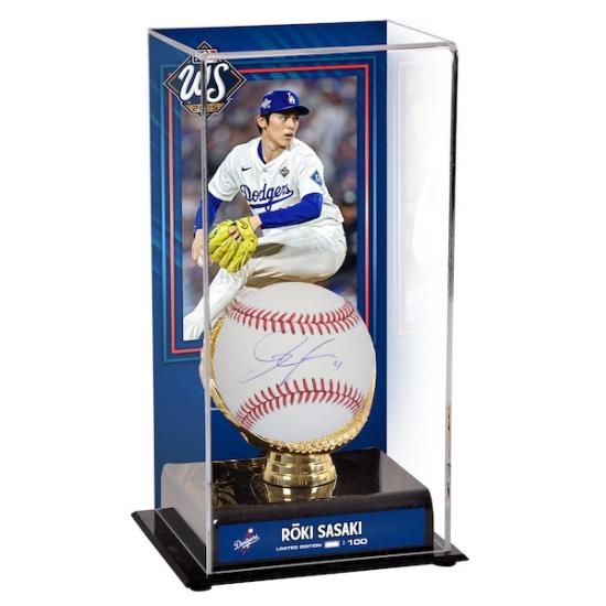 Roki Sasaki ロサンゼルス・ドジャース 直筆サイン入り ファナティクス オーセンティック 2025 ワールド シリーズ チャンピオン MLB ベースボール inside a サブリミテッド ディスプレイケース (写真付き) - 限定版 オブ 100は、メジャーリーグ公認のMLBグッズです。