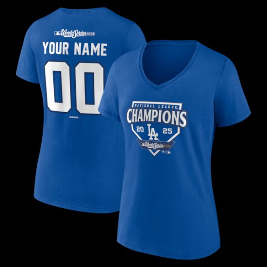 商品説明 ロサンゼルス・ドジャース レディース 2025 ナショナル リーグ チャンピオン カスタム ネーム&ナンバー Vネック Tシャツ - ロイヤルは、メジャーリーグ公認のMLBグッズです。