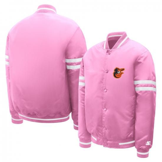 ボルティモア・オリオールズ スターター ユース チーム ロゴ フル-スナップ サテン ヴィーシティ ジャケット - ピンクは、メジャーリーグ公認のMLBグッズです。