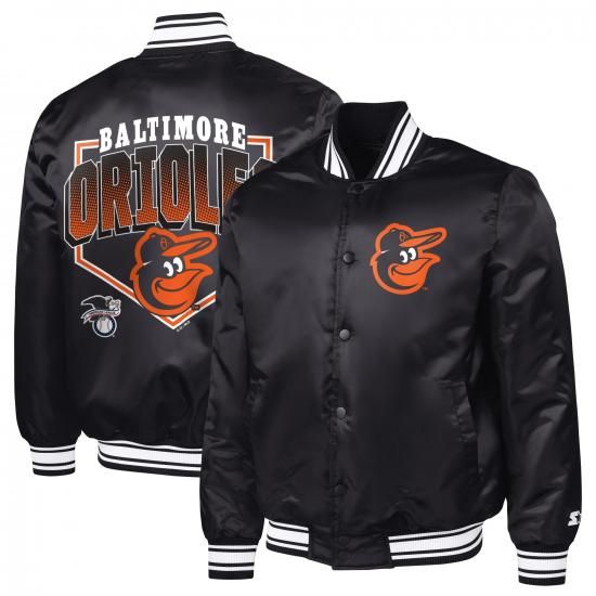 商品説明 ボルティモア・オリオールズ スターター ホーム プレート プリント グラフィック サテン フル-スナップ ヴィーシティ ジャケット - ブラックは、メジャーリーグ公認のMLBグッズです。