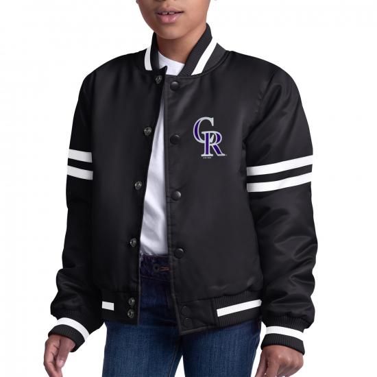 コロラド・ロッキーズ スターター ユース チーム ロゴ フル-スナップ サテン ヴィーシティ ジャケット - ブラックは、メジャーリーグ公認のMLBグッズです。
