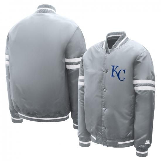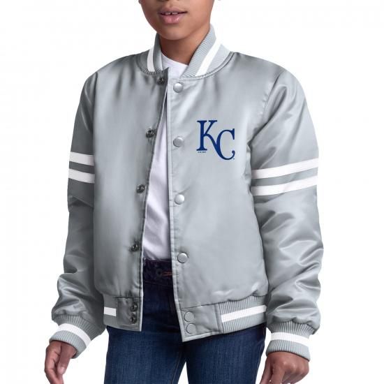 カンザスシティ・ロイヤルズ スターター ユース チーム ロゴ フル-スナップ サテン ヴィーシティ ジャケット - グレーは、メジャーリーグ公認のMLBグッズです。