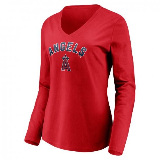 ロサンゼルス・エンゼルス レディース パーソナライズ Winning ストリーク ネーム&ナンバー ロングスリーブ Vネック Tシャツ - レッドは、メジャーリーグ公認のMLBグッズです。