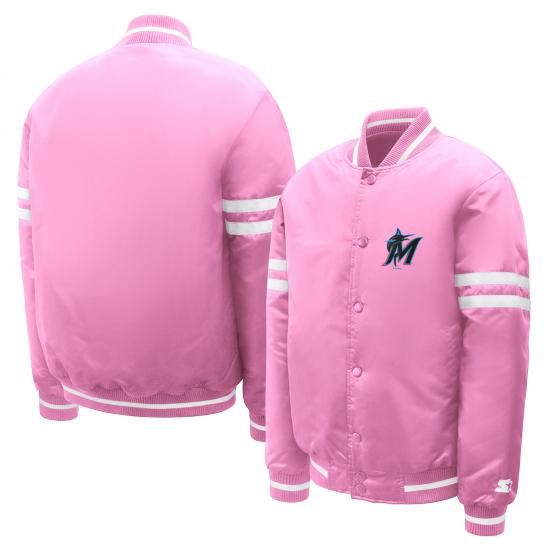 商品説明 マイアミ・マーリンズ スターター ユース チーム ロゴ フル-スナップ サテン ヴィーシティ ジャケット - ピンクは、メジャーリーグ公認のMLBグッズです。